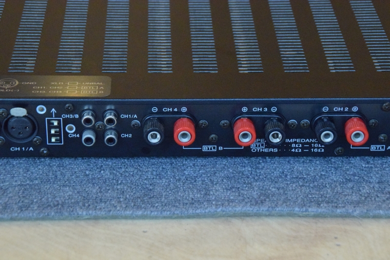 4ch(100W)パワーアンプ、BTLで2ch(300W)(2ch+BTL1ch=3ch)にもなります。