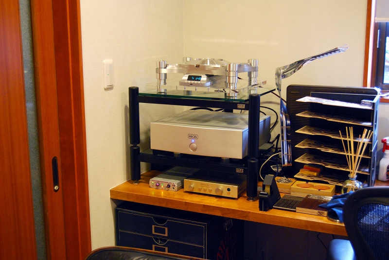 こじんまりとした書斎にコンパクトなハイエンド機器は非常にセンス良く鳴ってます。